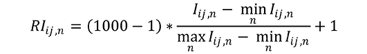 6. Сваки од дискретизованих индикатора (Iij) израчунат у складу са делом 2. овог прилога, рескалира се унутар распона 1 – 1000, применом следеће формуле: