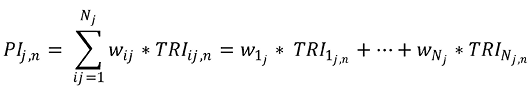 9. За потребе обрачуна композитног индикатора, категорије ризика ј агрегирају се путем пондерисаног геометријског просека, применом следеће формуле: