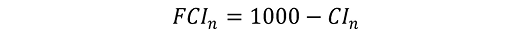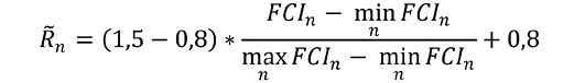 11. Коначни композитни индикатор (FCIn), израчунат у складу са делом 5. овог прилога, рескалира се применом следеће формуле: